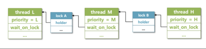 - lock이 release된 스레드는 원래 priority를 다시 저장 한다.